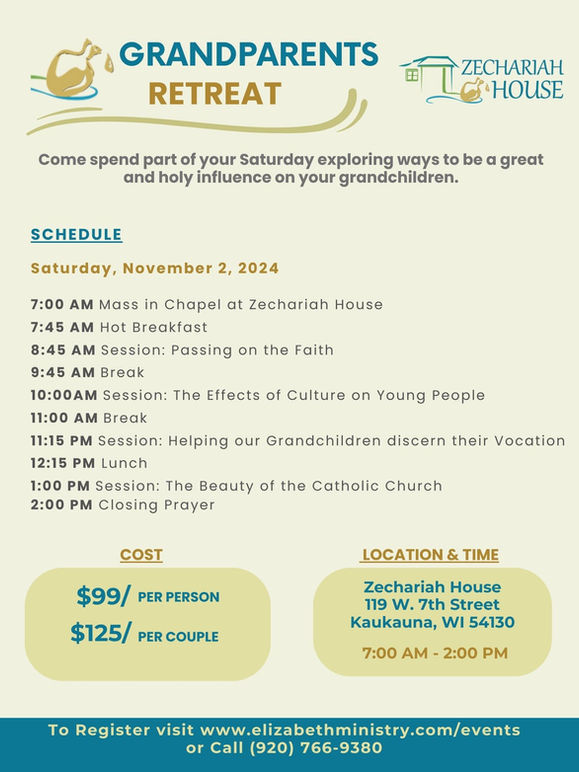 The Grandparents Retreat offers time with fellow grandparents and knowledgeable hosts to learn how to encourage your grandchildren to grow spiritually in this challenging culture. We’ll share ways to provide support to both your grandchildren and their parents.